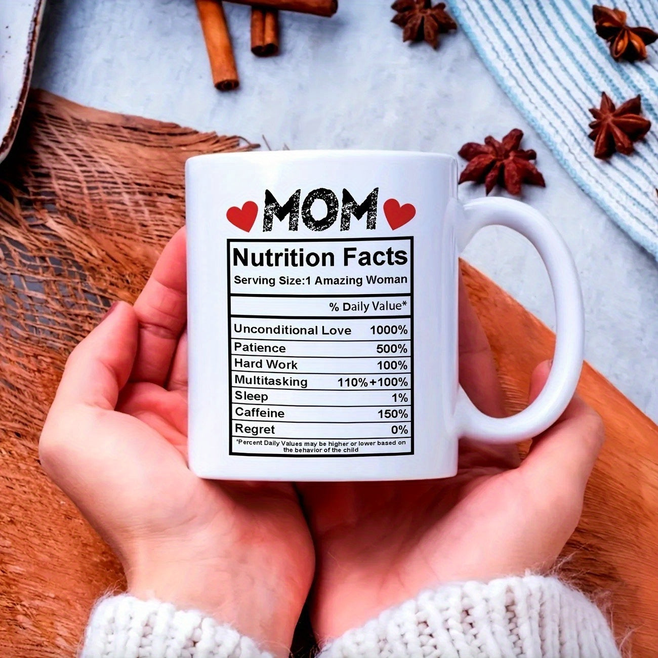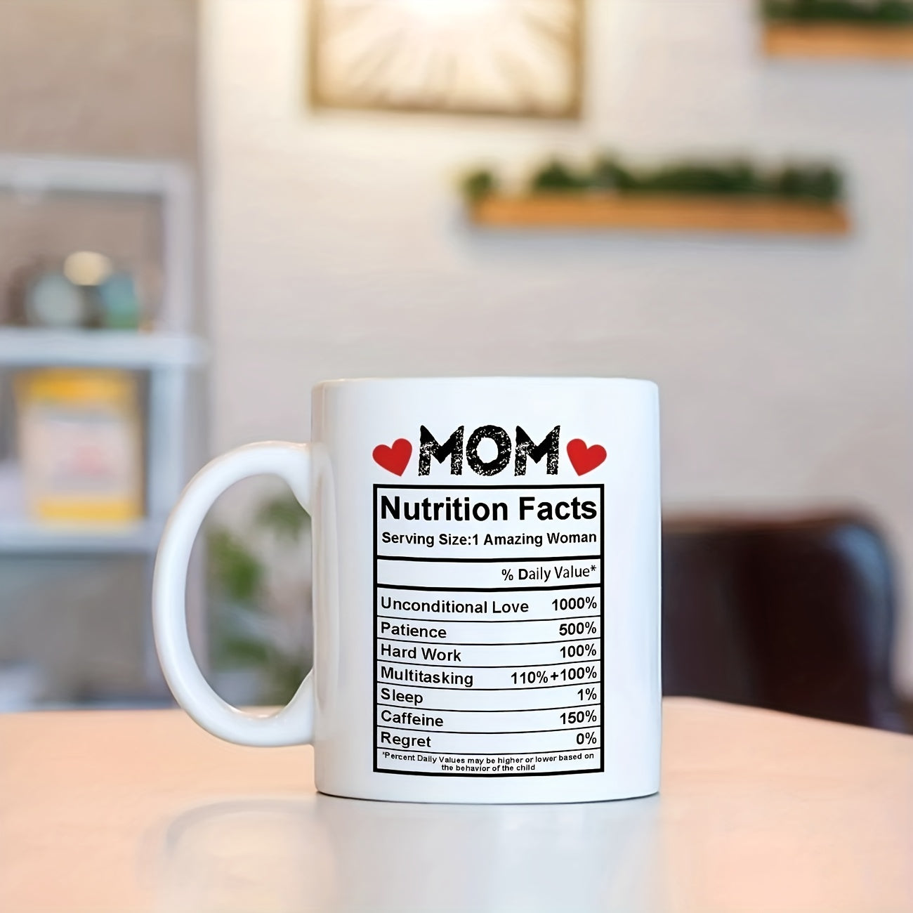 1pc 11oz MOM Ceramic Coffee Mug, White Tea Mug For Mom, Classic Drinking Cup With Handle, Novelty Gift, For Hot Or Cold Drinks Like Cocoa, Milk, Tea Or Water, Mother's Day Gifts, Birthday Gifts