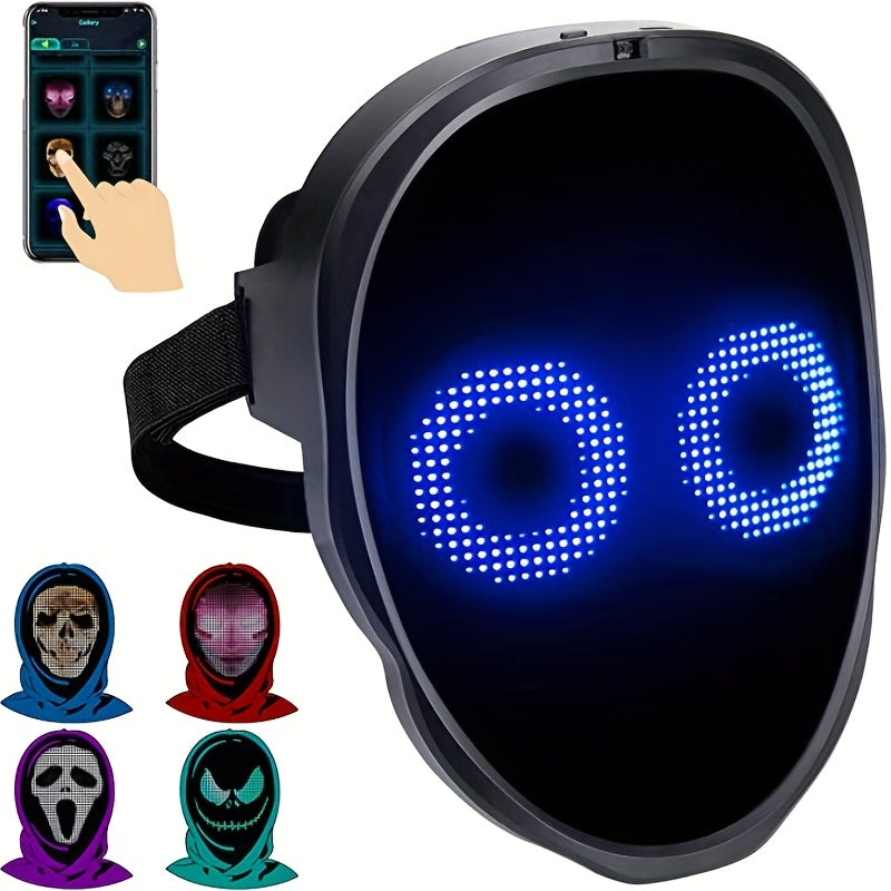 1 Pack Led Mask With APP Programmable,Shining Led Light Up Face Mask For Adult Halloween Masquerade Party